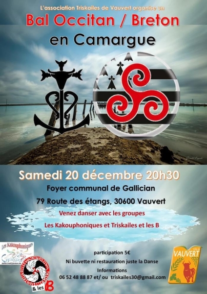 Date : Samedi 20/12/2025 Horaires : 20h30 Tarifs : 5€ Organisateur : ASSOCIATION TRISKAILES Adresse de l'événement : FOYER COMMUNAL DE GALLICIAN 79 ROUTE DES ÉTANGS 30600 VAUVERT Informations complémentaires : Avec Les Kakouphoniques et Triskailes !