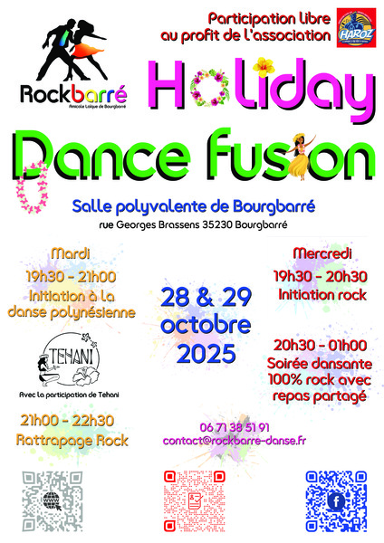 Le Holiday dance fusion a pour objectif de promouvoir la danse dans son ensemble. Il se déroule 4 fois dans l'année, durant les vacances, en partenariat avec d'autres associations de danse de la région rennaise. Il se déroule sur deux soirées.