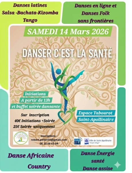 Date : Samedi 14/03/2026 Horaires : 13h à 23h50 Tarifs : 40€ Initiations + Soirée, 25€ Soirée uniquement Organisateur : LE BIEN ÊTRE EPLEUMIEN Adresse de l'événement : ESPACE CULTUREL TABOUROT DES ACCORDS RUE FRANÇOIS MITTERRAND 21850 ST APOLLINAIRE Danses pratiquées : Danse folklorique Référence de l'annonce : 63963 call06 10 66 63 64