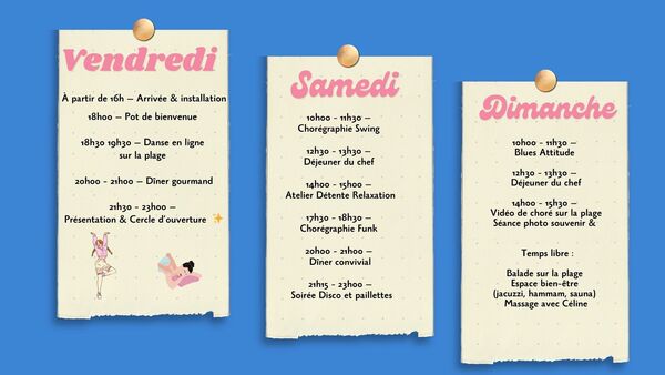 Au programme : Danse, Massages, Moments bien-être et Lâcher prise !